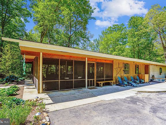 Mid-Century Modern located in the Charles County section of the Moyaone Reserve. The house, extensively renovated with the architect's original intent in mind, is a custom designed & built light-filled home set in an unspoiled natural environment on 5 wooded acres. Beautiful materials and workmanship throughout. Upgraded appliance, windows, flooring and a geothermal HVAC system to keep utility costs down. The gourmet kitchen will thrill experienced as well as aspiring chefs. Start the party in the kitchen, move to the dining room and living room or go outside to the large deck that overlooks the pristine woods or chill in the 20x26 screened porch. Kind of cold, kind of rainy? Then bring the party downstairs to the generously sized great room and attached wet par. Outside it's a gardeners dream with extensive hardscaping encompassing plantings of perennials, propagators and edible plants. There are various outbuildings including a very nice chicken coop and a 40x36 covered pavilion/pole barn with 11 ft ceilings. Unlimited possibilities. The house is located in the Moyaone Reserve, contiguous to Piscataway Park, home of the National Colonial Farm, and Hard Bargain Farm, an environmental education center, and is across the Potomac River from George Washington’s Mount Vernon home. Miles of hiking and biking trails, kayak and canoe launch sites are close by. Established community includes access to swimming pool, playground and organic garden plot. Within an easy commute to downtown DC, National Harbor, Old Town Alexandria and Capital Hill.