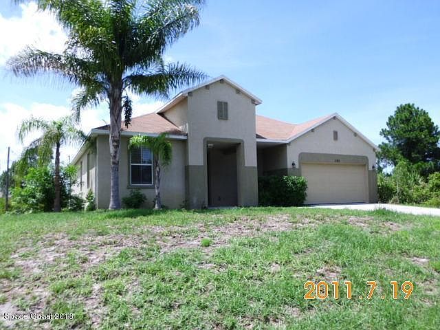 Lots of room in this 3/2/2. Combination living/dining area plus a large family room that is open to kitchen and nook area. Kitchen has granite counter tops. larger master bedroom with master bath that boasts duel sinks, garden tub and separate shower. Inside laundry. Covered porch all located in desirable SE Palm Bay.