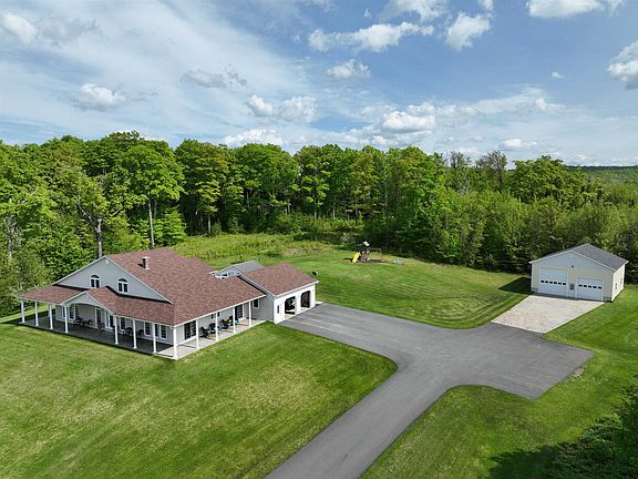 Meticulously maintained, bright, and oh so spacious! With this wonderful property you’ll have more than enough space, both indoors and out. The home is set on 33 private acres, which includes a large lawn, beautiful landscaping, a small sugar bush, and a pond. Plus, stunning views of Bear Mountain to the north and Jay Peak to the west are easily seen from the wrap-around covered porch. Built in 2003, the 3,400-square-foot home is still like new inside. Hosting large gatherings will be a breeze with the 33’6”x16’5” combined kitchen and dining area, where warm wood cabinets are topped by black granite counters. A wide doorway allows a smooth flow into the adjacent living room or through the foyer to the den. Down the hall, there’s an office, a ¾ bath, and 2 generously sized bedrooms with a full Jack and Jill bath, complete with two vanities and a soaking tub. A true retreat, the 24’x20’ primary suite is on the second floor, with a soaking tub and separate shower. Found in the courtyard, and accessible through multiple rooms, is an 18’x24’ in-ground pool. Connected to the pool area, the screened room is the perfect spot for cookouts and summer celebrations. There’s an attached 2-bay garage, plus an oversized detached 2-bay garage/workshop that easily accommodates an RV, boat, and more. From here, it’s a 10-minute drive to downtown Newport, and just 14 miles to Jay Peak Resort. Get a closer look with the virtual tour and imagine yourself living in this stunning home.