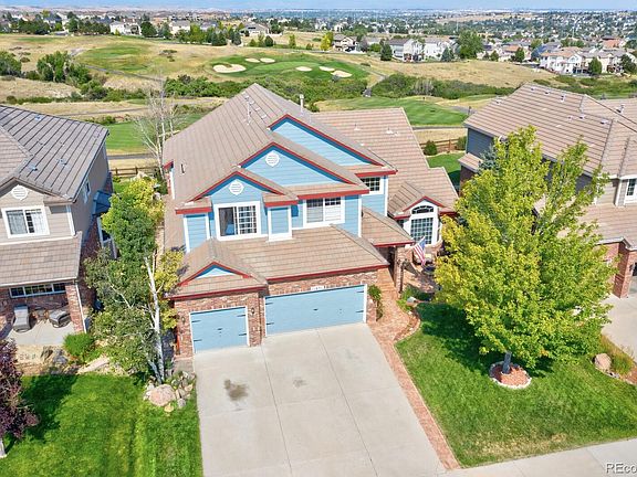 Gorgeous 2 story Home on Black Bear Golf Course with Stunning Mountain Views of the Front Range and downtown Denver skyline! See these views from the massive vaulted windows in main living room and the master bedroom! Enjoy entertaining outdoors in the private backyard with a built in gas grille, fridge and sink, next to a fabulous brick wood burning fireplace on the back patio. Covered front porch with stamped concrete and large, mature trees. Eat in kitchen and formal dining room. Kitchen offers a double oven, granite counter tops with 42" cabinets and a granite integrated sink. Main level office with French doors and built in shelving. The large formal living room has vaulted ceilings with beautiful detail, which heads you up the stairs to the loft where you can again enjoy the golf course and mountain views. Two bedrooms share a Jack & Jill bathroom and a fourth guest bedroom with it's own private full bathroom and walk-in closet. The oversized Master bedroom has a private fireplace and custom tiled floors with a walk-in closet. The fully finished basement has room for movie watching, game playing and a fabulous wet bar area. The basement also includes custom shelves and cabinets with great art nooks to display your favorite decor. A great size bedroom with a retreat off to the side and full bathroom make this a wonderful place for family and friends. 3 car oversized garage and fantastic tiled laundry room with utility sink. Exterior of the house newly painted just two weeks ago and all windows and doors were recently resealed. This home has it all and is ready for entertaining and enjoying views for years to come!