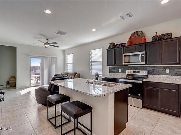 Welcome home to this 3 bed 2 bath 1257sqft Florence home in sought after Magma Ranch! Perfectly located with no neighbors behind, this 2020 home boasts granite countertops, custom backsplash, stainless steel appliances, and a low maintenance backyard. This home is also equipped with smart home technology giving you the ability to control lights, thermostat, front door lock, and the garage door from your phone as well as being pre-wired for security cameras. Schedule your showing today before this home is gone!
