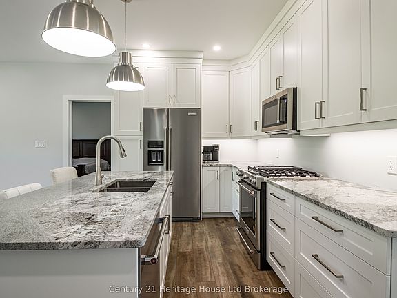Welcome to Eden. This newly built home redefines modern living and delivers everything todays buyer is looking for space, style, and functionality. Sitting proudly on a spacious lot with a double-car garage, this home features an open concept main floor 1496 sq ft above grade and additional 1100 sq ft finished below grade , designed for effortless everyday living. Kitchen has SS appliances and granite counters. The heart of the home is its open-concept layout, where natural light floods in and every detail reflects quality craftsmanship. Main floor features a master bedroom with a walk-in closet and spacious ensuite as well as direct access to the oversize deck. Completing this level is two additional bedrooms and full bathroom as well as large mud room and main floor laundry. But the wow-factor continues downstairs. The fully finished basement includes an additional bedroom and full bathroom, a stylish bar for entertaining, and a walk-up to the garage a perfect blend of function and flexibility. Step outside to discover an oversized deck, ideal for summer barbecues, family gatherings, or simply soaking up the serenity. Located just minutes from the shores of Lake Erie and Port Burwell Provincial Park, and within easy reach of Tillsonburg's shops, restaurants, and amenities, as well as HWY 3 this home offers the perfect balance of tranquility and convenience. Why settle for ordinary when you can own extraordinary? This home isn't just brand new - its your new beginning.