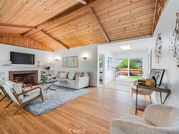 This beautifully upgraded 3-bed, 2-bath home blends charm, comfort, and modern convenience—complete with the white picket fence! Located in a friendly pocket within the Colfax Charter School District and near top magnets like North Hollywood High’s Gifted Magnet, this home is ideal for families and entertainers. Out front, enjoy a lush lawn, blooming roses, mature persimmon trees, and a striking burgundy flowering Crape Myrtle tree—adding year-round curb appeal. Enter into a spacious living room with vaulted wood ceilings and a cozy fireplace. A bright den with skylight and sunroof leads to a backyard with mature lemon and navel orange trees—and potential for more. The open kitchen features quartz counters, modern backsplash, sleek cabinetry, stainless appliances, heavy-duty exhaust, and recessed lighting. Adjacent is a laundry area with front-load washer/dryer and ample storage. The large primary bedroom includes a custom-organized closet. A third bedroom with built-in Murphy bed offers flexible guest or office use. Both bathrooms have been stylishly renovated. Eco-conscious upgrades include attic insulation, upgraded electrical, central A/C, and a garage with EV charger. With easy access to freeways, shops, and dining, this is Valley Village living at its best.