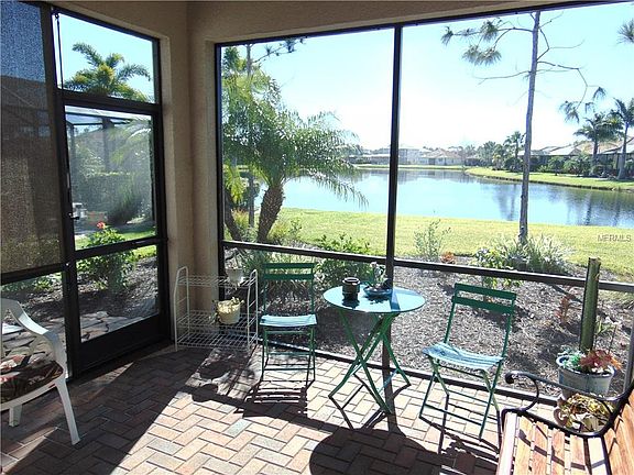 Fantastic Water View in active attractive community of Stoneybrook. This Capri model by Lennar is a great fit for winter home, 1st home, family home with 3 bedrooms, 2 bath, 2 car garage. Home located toward back of community so little traffic. Attractive exterior with high grand entrance. Newer screened in front doorway with gorgeous front glass door welcomes you into the home. High ceilings with crown molding with open great room. Great room opens to the back screened and covered lanai. Look over manicured landscape yard to the best view of the larger pond in the community. Kitchen has breakfast nook and breakfast bar. Granite counter tops and stainless steel appliances. Master bedroom has walk in closet, master bath has garden tub, walk in shower, water closet and dual vanities. Large ceramic floor tile on diagonal in all living areas. Community offers 24 hour guard gated. Club house very social with several activities every week, resort pool, grill area, Fitness room, tennis, ball field, floor hockey rink, play grounds, sidewalks through out the community. Minutes away from local beaches and I75 Interstate.