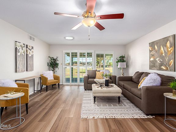 Price reduced just in time for SnowBird Season! Situated ideally on the 12th tee box of the Ahwatukee Country Club golf course, this low maintenance townhouse is ready for you & your active lifestyle! Located .5 miles from Ahwatukee Country Club Club & .3 miles to Ahwatukee Recreation Center, you'll be glad your HOA fee covers both front & back yard landscaping & all exterior house maintenance so you'll have plenty of time to enjoy the amenities. ARC has a modern gym, outdoor & indoor pool, pickleball courts & a plethora of clubs & activities. This 2 bed/2 bath home offers luxury vinyl plank flooring (no carpet anywhere), newer windows, shutters throughout, stainless appliances, paver patio/walkway, 2 car garage & all on a gorgeous golf course lot! Very socially active neighborhood too!