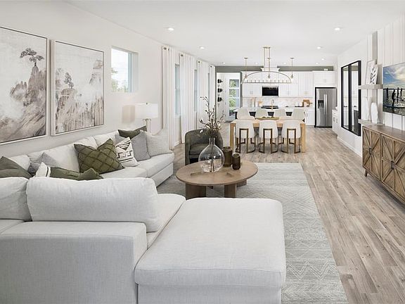 Under Construction. This beautifully designed 1,754 sq. ft. Champagne model villa with a Craftsman elevation offers 2 bedrooms, 2 bathrooms, a private study, and a 2-car garage that is pre-plumbed for a utility tub. The open-concept layout is filled with natural light thanks to expansive sliding glass doors and 8' interior doors that enhance the home’s airy, spacious feel. Soft stone-gray ceramic tile flooring flows throughout the main living areas and bathrooms in a stylish staggered pattern that adds movement and elegance. The executive-style kitchen showcases painted linen cabinetry with crown molding, smooth medium-gray quartz countertops that provide a striking contrast to the lighter finishes, and a light-toned brick-pattern backsplash with subtle gray accents. Stainless steel appliances include a quiet dishwasher, steam microwave, smart electric range with air fry (ENERGY STAR® certified), and a side-by-side refrigerator with exterior ice and water dispenser (ENERGY STAR® certified). The owner’s suite features a tray ceiling, a spacious walk-in closet, and refined finishes. Bathrooms are appointed with brushed nickel faucets and undermount rectangle sinks. Outdoor living is a true highlight of this home, with a covered, screened lanai offering peaceful water views and pre-plumbing already in place—ready for you to create the outdoor kitchen of your dreams. Whether you're entertaining guests or enjoying a quiet evening, this space is perfect for embracing Florida’s indoor-outdoor lifestyle. The great room includes a TV wall mount package for easy entertainment setup, while recessed LED lighting enhances the ambiance in the great room, study, and lanai. This home truly has all the bells and whistles—even a washer and dryer are included! Located in Brightmore, Wellen Park’s only 55+ community, residents will enjoy a future 21,000 sq. ft. amenity center with 8 pickleball courts, a stadium court, two pools (lap and resort-style), a state-of-the-art fitness center, bar and café overlooking the pools, dog park, outdoor exercise lawn, hot tub, full-time lifestyle director, and more. Just minutes from beaches, downtown Wellen Park, dining, and shopping—accessible by golf cart, bike, or a leisurely walk. *** Photos, renderings and plans are for illustrative purposes only and should never be relied upon and may vary from the actual home. Pricing, dimensions and features can change at any time without notice or obligation. The photos are from a furnished model home and not the home offered for sale.