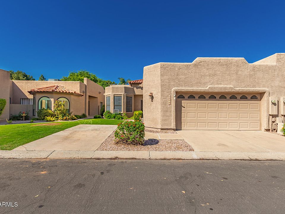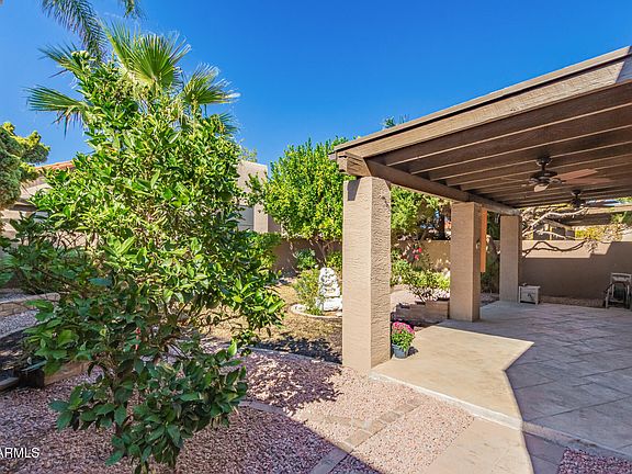 A favorite floorplan with lovely large, private backard with lemon & orange trees.. Bonus is a coveted extra parking pad. Pickleball, Tennis, Heated Pool & Spa and a shaded Ramada are favorite gathering spots. this Guard Gated Community is adjacent To Stone Creek Golf Course & In close proximity to very desirable shopping, dining, hiking, walking trails a fitness path at Cholla Park, mountain trails for nearby hiking and biking.The HOA provides 24 HR security at the neighborhood entry.HOA also provides front landscaping maintenance and a planned cycle of painting for each home stucco and trim. HOA also maintains the private streets, front yards and overall community landscape maintenance.A 4 minute drive to the New Imagined Paradise Valley Mall and exciting new dining locations.