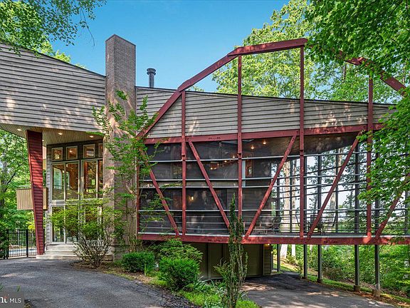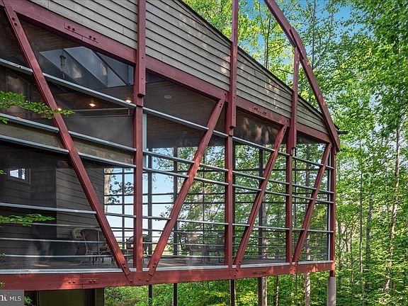 Perched like a sculpture high above the banks of the Occoquan River, this postmodern home, a triumph of architectural artistry, is designed to pay homage to the river below it by echoing the curves of the waterway. This 5-acre retreat feels worlds away, resembling the untouched beauty of the Shenandoah Valley, yet it's located just minutes from the VRE Manassas and Manassas Park Stations, offering a seamless connection to the energy of Washington, DC. Wake up to the mist rising from the river and end your days with the golden wash of sunset on the water. With direct river access down a gently winding path, mornings can begin with a quiet paddle or the symphony of birdsong from over ten native species. Here, wild turkeys, bald eagles and red foxes are your neighbors, and tranquility reigns. <br><br> Step inside, and you're greeted with an interplay of form, function, and fantasy. Angular geometries meet fluid lines in a space that breathes light and texture. Walls curve and bend as if alive, dissolving the barrier between inside and out, and drawing your eye to the panoramic views of the river and woods. The 2,700 sq ft floor plan is masterfully designed with a focus on flexibility, flow, and seamless integration with its natural surroundings. The main level features a serene primary suite with its own private deck, a well-equipped kitchen, convenient laundry area, formal dining space, and a striking sunken living room warmed by a wood-burning fireplace - perfect for cozy evenings. Upstairs, a spacious bedroom with a private deck is accompanied by a full bathroom, a sunlit study that offers inspiring views of the trees and river beyond and a large storage room. The on-grade lower level offers exceptional versatility and can serve as a fully independent living space, complete with two full bedrooms (the second could function as a multipurpose room ideal for a guest suite or media lounge), two full bathrooms and a second kitchen for added convenience. The interior is a celebration of postmodernism—elegant yet bold, blending natural elements with sculptural precision. Floor-to-ceiling glass and warm wood tones create a harmony that is both calming and inspiring. This is not just modern living - it is elevated living, where design intention meets livable beauty. <br><br> Beyond the walls, the vision continues. A heated pool offers rejuvenation nearly year-round, while multiple decks and a stunning multi-level screened porch create dynamic outdoor experiences in every season. These architecturally expressive spaces extend the home’s rhythm outward, framing unforgettable vistas of the Occoquan River from many angles. Whether enjoying a morning coffee or an evening cocktail, these outdoor environments merge serenity with spectacle. <br><br> And when you’re ready to explore beyond your riverside haven, Old Town Manassas awaits with vibrant culture, dining, and historic charm just moments away. Nearby Prince William Forest Park invites you to wander through 15,000 acres of untouched nature. This home isn’t just a place to live - it’s a retreat from the ordinary, a rare fusion of art, architecture, and nature. Welcome to a home where postmodern brilliance meets riverfront serenity, and the everyday becomes extraordinary.