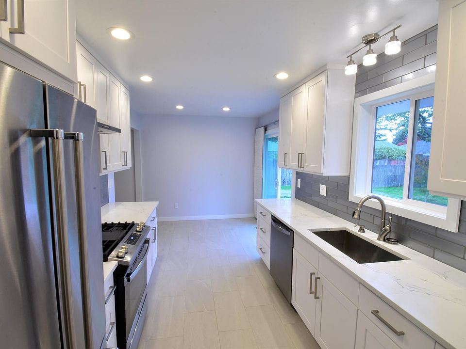 Amazing 3 bedroom, 1.5 bathroom house in the upper Shorewood neighborhood of Burien. Newly remodeled bathrooms, kitchen and laundry room with large bonus room in back. Oak floors and newly laid tile throughout house. Large backyard and paver patio for barbecues and outdoor activities. Home is available now. Stainless steel kitchen appliances, gas range, fridge with ice and water, washer and dryer included. $2700 a month- first and last month rent plus security deposit due at signing. 1 yr - 18 month lease term. 1 yr lease required. No smoking allowed. Small dog allowed. Utilities not included. Yard will be maintained by owner.