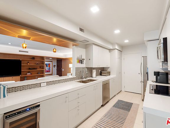 Tucked away on a quiet Brentwood cul-de-sac, this top floor corner unit at Chenault Flats offers privacy, style, and seamless indoor-outdoor living. With only one shared wall, the two-bedroom two-bathroom condo features floor to ceiling sliding doors that open to a private balcony with treetop views, an open kitchen with Bosch appliances and quartz counters, a spacious primary suite with dual closets and en suite bath, in unit laundry, and engineered wood floors throughout. The boutique 22-unit building includes a pool, fitness center, and gated side by side parking, all just moments from San Vicente's shops, cafes, and Whole Foods.