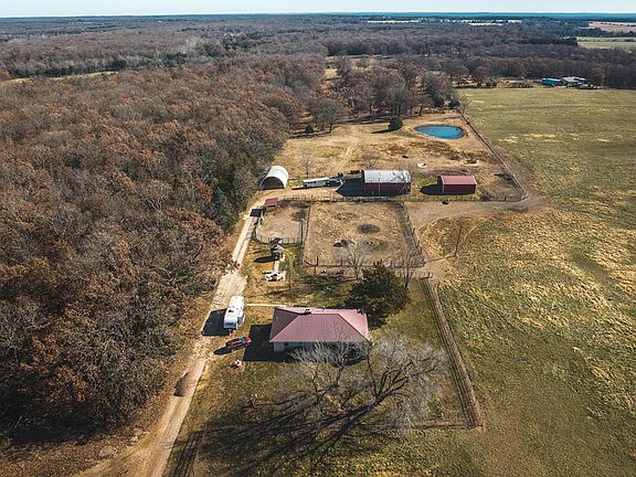 Discover Farm Living with rare Opportunity. Nestled on 40 acres, this home boasts 2 bedrooms & 2 bathrooms & beautiful hardwood floors. Enjoy the natural light in the sunroom or cozy up by the stunning rock fireplace. While the basement remains unfinished, it holds promise with a roughed-in bathroom, inviting you to customize and create additional living space. Outside, experience the allure of a well-maintained square lot with multiple barns and outbuildings, purposefully designed for horses & more. The property is already equipped with pipe-fencing tailored for horses and buffalo. Nature lovers will appreciate the two ponds on the property, stocked with fish, offering opportunities for leisurely fishing. A durable metal roof & 2 sump pumps in the basement add practicality. Experience the charm of rural living within a beautifully maintained farm that seamlessly blends comfort, functionality & natural beauty. Schedule a showing today!
