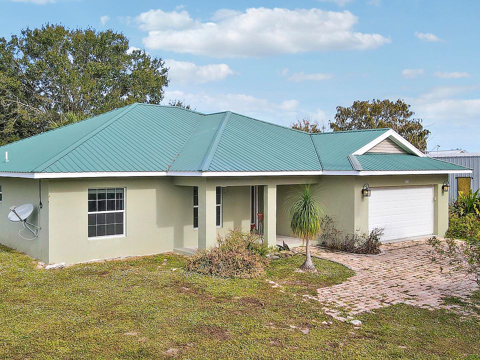 Discover this beautiful 3-bedroom, 2-bath CBS home perfectly situated on a 1/2-acre corner double lot. Offering 1,672 sq. ft. under air (2,725 total), this property delivers the space, comfort, and functionality you've been looking for.Step inside to find freshly painted wood cabinets, granite countertops, stainless steel appliances, and a convenient buffet window--a great layout for cooking and entertaining. The home features ceramic tile throughout, a metal roof, new master bath vanities, a charming front porch, and a generous 13' x 30' covered patio perfect for outdoor living.For hobbyists or those needing extra storage, this property also includes a 1,200 sq. ft. steel-frame building/workshop, ideal for equipment, vehicles, or toys.This home has so much to offer!