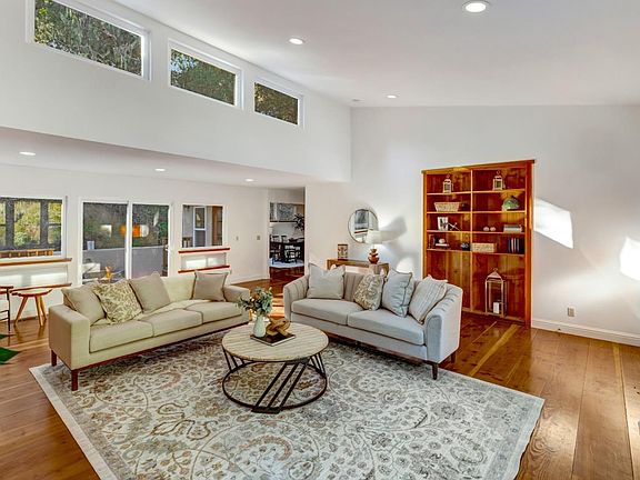 Find tranquility in a Monterey neighborhood that places you minutes from exceptional restaurants and legendary golf. Just down the street from Del Monte Golf Course (the oldest operational course west of the Mississippi), this single-level home sits on half an acre of tree-studded land. Set back from the road and fronted by an expansive driveway, it offers a palpable sense of privacy and calm. Step into a chic, warm living room, where elevated ceilings draw your eye upward and into the heart of the home. Wide-plank Douglas fir floors lead past a fireplace into a second, more informal living space. High-set picture windows emphasize the elegant pitch of the ceiling and frame lush glimpses of an ivy-covered hillside. Use this room as a study, a dining room, or that elusive thing you've always dreamed of having in a home. A pass-through window connects a breakfast bar to a beautiful kitchen with custom cabinetry, granite countertops, stainless steel appliances, and a gas range. With sliding glass doors in two of three bedrooms and wide windows seemingly all around you no matter where you stand, this home delivers effortless indoor-outdoor living. Come discover all the wonderful built-ins and luxurious finishes throughout this home, and start living your life the way you really want.