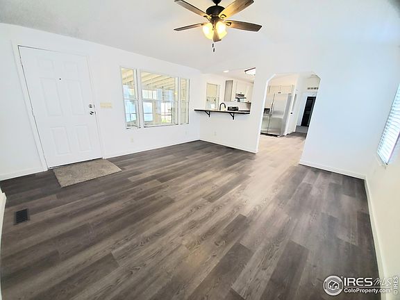 This home is a showstopper! Perfect location in an upscale and gated 55 and over community in central Loveland where you'll be close to everything! Huge side by side 2 car carport and fully covered entryway with ramp for ease and access. Completely updated and move in ready condition. All new luxury vinyl plank flooring in living room, kitchen and laundry room. Kitchen has all new cabinets, gorgeous butcher block counter tops, large deep sink with pull down faucet and all stainless steel appliances, fridge even has an ice and water dispenser! Roomy primary bedroom with walk in closet and the on-suite bath boasts double sinks, a vanity area and gorgeous custom tiled shower with glass shower doors. 2 Additional bedrooms and a full bath at opposite end of the home, all bedrooms have new carpet. New 40 gallon water heater and AC blows ice cold! Outside the home has all new exterior paint, there are 2 storage sheds, new back steps with railing and a nice shady evergreen trees. New roof with class 4 hail resistant shingles and warranty! This is the perfect place to call home! Call listing agent to see it today, financing is even available if needed!