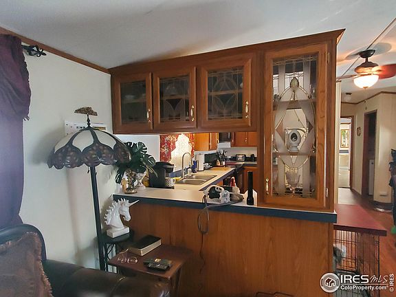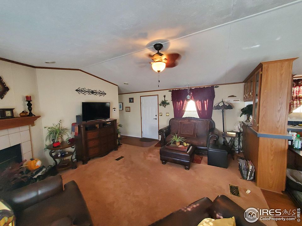 Huge and beautiful 1,292 sq.ft. home with lovely covered porch with gate for your pooch to join you while enjoying our lovely Colorado weather. Large living room with fire place spills into a spacious eat-in kitchen with tons of cabinets. 5 X 6 pantry & more!!. Huge Primary Bedroom with lots of natural light and walk-through (not just walk-in) closet! No more getting out of the shower & having to run through your bedroom looking for clothes! Luxury 5 piece master bathroom. Double sinks, soaker tub, separate walk-in shower. Living room has built-in shelving as does kitchen. Fully fenced yard for your small dog. Great shed and outside patio area. Too many features to mention here. This is a must see and ready to move-in. Home has been wonderfully cared for. People & pets to be approved in park prior to closing. Measurements to be verified by Buyer or Buyer's agent