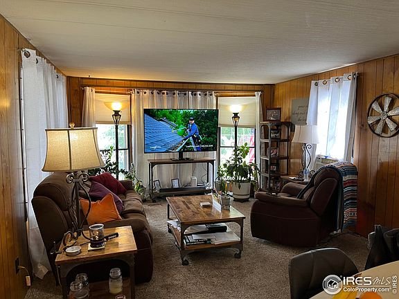Welcome home to this gated 55 and old community of Aspen Ridge. The moment you enter this home you will notice the ease of living with the open floorplan. The living room has tons of natural light and flows into the large kitchen area. All kitchen appliances included newer refrigerator and sink! The 2 bedrooms are located down the hall to the back of the home. The large primary suite has access to the full bath. The exterior of the home has 2 sheds, an enclosed fence area, large covered patio for hot summer days, and a new side deck. You won't find another home at this price so come on over and take a look!! Park allows you to have 2 small pets which includes smaller dogs only. Financing available reach out to listing agent for more details. This home is located right off the bike trail system, downtown restaurants, shopping and a short drive to Estes Park! Lot Lease is $1096 a month. All applicants must call the Aspen Ridge Office 970-669-2727 to apply prior to offers written.