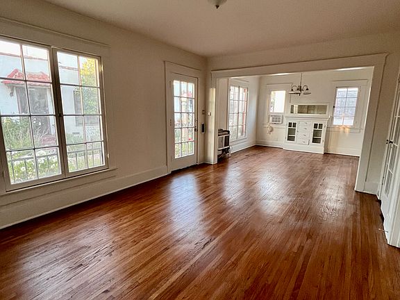 Charming Spanish bungalow in gated courtyard setting in East Hollywood. 1bd/1ba. Original details include hardwood floors in the living and dining areas and bedroom, French windows, and mantle in the living area, large French wood door with 15 panes and built-in cabinet in dining area. Restored period kitchen with farmhouse sink, Spanish floor tiles, tiled countertop, and new stove and fridge. Original Clawfoot tub in the bathroom with hexagon floor tile and subway tiles on the walls. Plus, there's a side patio, one parking space, and an on-site washer and dryer. One year lease. Move-in funds are 1st month's rent and security deposit. Owner pays for water. Renter is responsible for all other utilities, including gas, electric, and trash. Cats may be allowed with additional deposit and approval.
