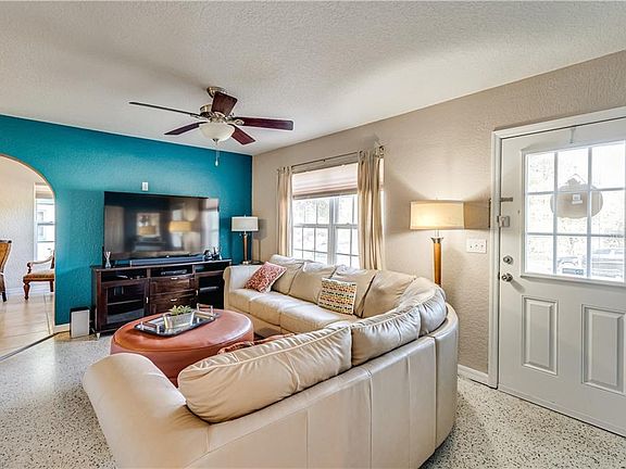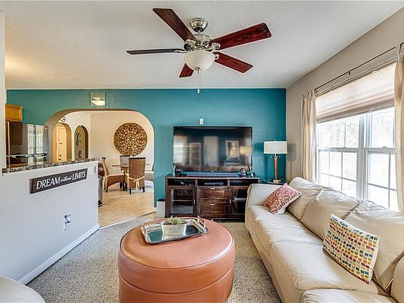 Do not miss your chance to see this absolutely adorable Spring Hill home! This gem is perfect for someone searching for a first home or looking to downsize. It features an open floor plan with a great room. The kitchen offers wood cabinets with built-in wine storage and laminate counters. The eating area is a great spot for a casual snack or a full meal with the family, and it offers additional counter space. A modest utility room provides storage. The master bedroom and two guest beds offer respite for you and your family or guests. An updated bathroom sports a beautiful vanity with tile backsplash and a tub/shower combo. Outside, an open patio overlooks the fenced back yard with fruit trees and a fire pit for cooler nights. There's an additional storage room accessible via the covered carport so you can comfortably accommodate all your belongings. Brand new AC! Located only minutes away from US 19 (Commercial Way) for easy access to Hudson, Clearwater, Tarpon Springs, and Homosassa. It's also close to schools, a public library, Pioneer Park, and tons of shopping and dining options. This home absolutely will not last, so get in before it goes!