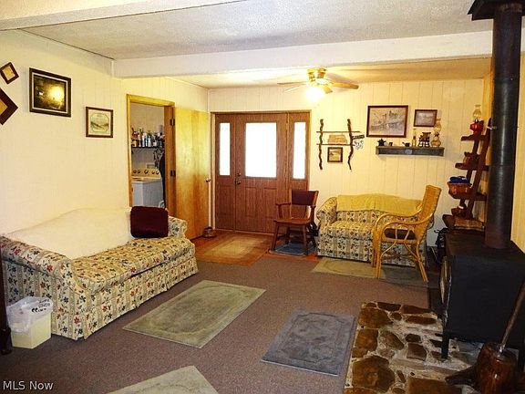 End of road- beautiful totally private country ranch style home. 19.22 acres, owner share of mineral rights. Custom built rustic wood home features 2 large bedroom, master 20x15, spacious country kitchen w/ custom cabinetry. 18x16 dining room, wood stove living room, 1.5 baths, family room 14x21 w/ wood stove. Laundry/ utility room. Central heat/air, wood stoves, baseboard electric heat. Side porch 11x66. Welcoming front porch 12x43, garage 22x32, 17x8 workshop, firewood shed 14x22, wood shop/storage17x24, 18x13 ATV shed. Dog house. Paved driveway. End of road location. Private and peaceful. 1 apple, 2 peach trees. Grape arbor and garden area. Mostly wooded. Beautiful home and location- a must see!