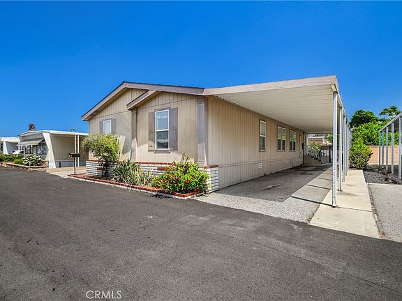 Discover a comfortable and spacious 4-bedroom, 2-bathroom manufactured home in the welcoming Rancho Rialto mobile home park, suitable for all ages. The home features an open concept layout with newer laminate wood floors in the kitchen and dining area. The large primary bedroom comes with an en-suite bathroom, offering both a soaking tub and a separate shower stall.