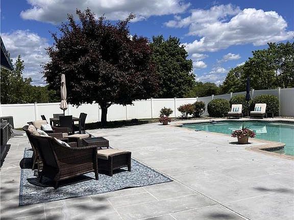 Welcome home! This spacious home greets you with a charming front porch and a dramatic 2 story foyer that leads you into a formal living and dining room. The spacious kitchen features 42" cabinets, a breakfast nook with sliders, and flows seamlessly into the family room with a cozy fireplace(propane) and French doors for indoor-outdoor living. Enjoy an inground pool and expansive patio-perfect for entertaining. A first-floor office or bedroom, convenient laundry and abundant closet space add flexibility and function. Upstairs, the primary suite boasts dual walk-in closets and private access to a bonus room currently used as an oversized dream closet. The full unfinished walkout basement offers endless possibilities. A whole house generator ensures uninterrupted comfort to the home's ambiance. This won't last. Schedule your appointment today.