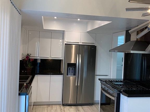 Completely remodeled bright top unit apartment with 2 bedrooms , 2 baths ( one full bath and one 3/4 bath) located in a secured 4 unit complex. Corner unit with one shared common wall .New flooring through-out the unit. Spacious living room with a wet bar and fireplace. Dining room off the kitchen leads to the balcony. Modern kitchen cabinets , granite counter tops and backsplash and a contemporary vent hood. New stainless steel refrigerator, dishwasher and range. Dimmable recessed led lighting .Walk in and mirrored closets. Full capacity in unit new washer and dryer. Two secured tandem parking spaces in gated garage. Located in the nice area of the Vista Del Oro and close to shops and restaurants.
