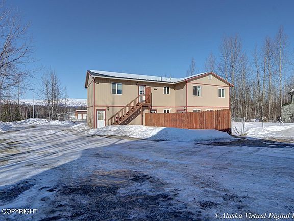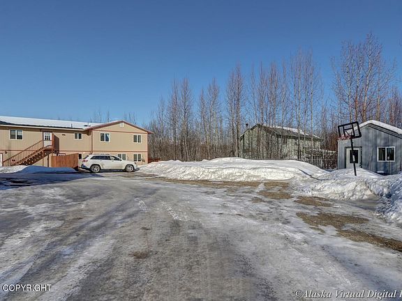 Income potential beyond your typical duplex. Property is zoned for duplex + ancillary units; see doc's on-line.. Main house (3/1.5/2) with an apartment above (2/1), detached single car garage with an efficiency unit on back side and a 2 bedroom 1 bath fully furnished unit above. Super location inside Wasilla City limits. Paved road access. 48 hour notice requested for occupied units.