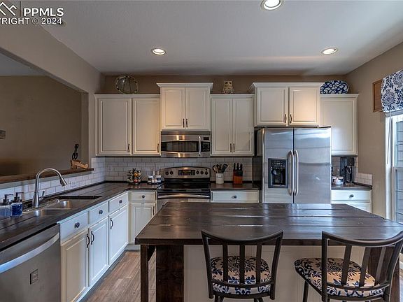 Lovely 3 story town-home in desirable Monument Colorado. Spacious family room, tile flooring, gas log fireplace with porcelain tile surround, dining area, walk-out to rear deck. Kitchen offers ample Douglas Fir countertops with island. Kitchen cabinets have custom distressed finish. Master bedroom and secondary bedroom are generous sized and both have walk-in closets and their own full baths (2 full baths upstairs). Laundry is found on the lower level. Garage is double deep/tandem. This lovely community is near shopping, restaurants, schools, the Monument YMCA, and the US Air-force Academy. Make this lovey town-house your home.