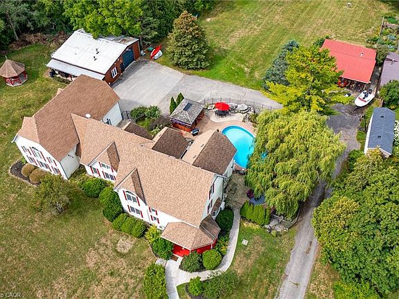 Welcome to 1166 Westbrook Road, a distinguished country estate that perfectly blends timeless Colonial architecture with thoughtful modern enhancements. Originally crafted in 1984 and lovingly maintained ever since, this once in a lifetime home is set on an impressive 2.3-acre postcard-worthy lot surrounded by nature’s best. From the moment you arrive, the tree-lined setting, manicured lawns, and landscaped gardens invite you into a world of serenity and sophistication. Inside, the home boasts an elegant layout highlighted by spacious principal rooms, an updated chef’s kitchen with premium appliances and custom cabinetry, multiple fireplaces, hardwood flooring, and abundant windows framing picturesque views in every direction. The 2 storey primary retreat offers a spa-like ensuite, private sitting area with a gas fireplace, a balcony overlooking the grounds, and a private staircase to a large loft that provides endless possibilities. The remaining upper level is home additional bedrooms and flexible spaces to accommodate family, guests, or home office needs with ease. Outside, the property is a true oasis for entertaining or relaxation, featuring expansive decks and rolling green space bordered by mature trees that provide a sense of escape. Here is where you can enjoy an inground pool, cabana, outdoor kitchen, gazebo, hot tub, log cabin, fireplace and several outbuildings. The attached heated garage accommodates up to six vehicles and presents endless potential for a hobby workshop or studio. Ideal for commuters, this private haven offers quick access in all directions—just 10 minutes to Binbrook, Smithville, or Upper Centennial, where shopping, dining, schools, and everyday amenities abound. A rare opportunity to own a home that has captured the admiration of passersby for decades, this exceptional property offers the perfect balance of rural tranquility, executive living, and convenient proximity to modern comforts. Luxury Certified.