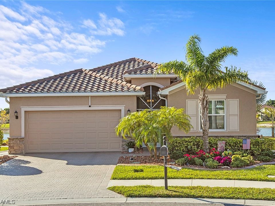 Welcome home to the gated community of Olympia Pointe. This 3 bedroom with den, 3 full bath home with extended patio overlooks the lake. Home comes with impact doors & windows. One guest room features a full bathroom (ensuite) perfect for your guests or weekend visitors. Granite countertops with stainless steel appliances in kitchen. The outside of the home was recently painted in the last 3 years. Roof and AC are 2014 with newer water heater. Walking distance to the 4,000 square foot amenity center with community pool, spa/hot tub, exercise room and playground. Olympia Pointe is a gated community with electronic guard, sidewalks and street lights, lawn care and irrigation. Located inside the city limits of Fort Myers, with a Lehigh Acres address... conveniently located close to Fort Myers, The Forum, Treeline, RSW International Airport and I-75. No flood zone. LOW HOA Fees. Call to schedule your private tour today!