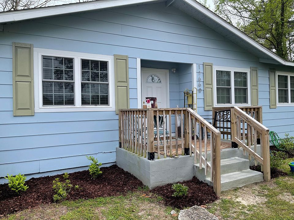 This adorable, furnished 4 bedroom, 2 bath ranch is essentially a brand new house! New roof. New windows. New doors. New HVAC. All new sheetrock, totally remodeled kitchen with new appliances, two brand new bathrooms with new tub/shower, toilet, vanities. Even the light fixtures are updated! All new flooring throughout. It's across the street from the Dollar General on Hwy 90. It's 2.8 miles to the beach. Close to the high school. What a great location!