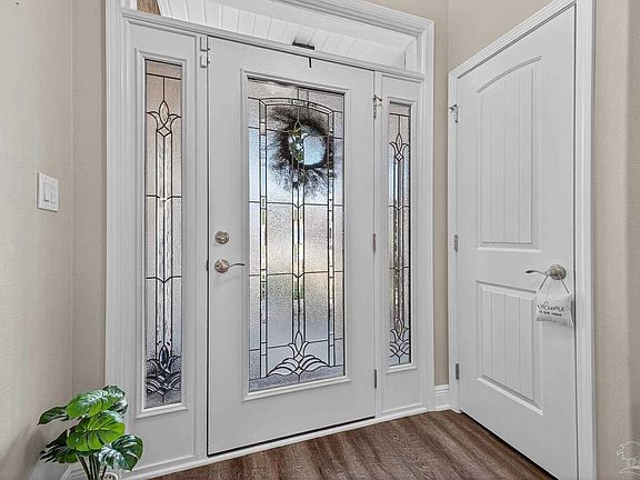 Welcome to this beautiful 4 bedroom, 2 bath all-brick home on a spacious corner lot—offering comfort and style. From the moment you arrive, you’ll appreciate the curb appeal with its charming craftsman columns on the front porch, brick mailbox, and double-pane low E366 vinyl windows. The large backyard with both a covered and open patio makes outdoor living a breeze. Step inside to an inviting open floor plan featuring a vaulted ceiling great room, dining area, and hop-up breakfast bar. The kitchen is beautifully appointed with custom bump-and-stagger upper cabinets with hidden hinges and crown molding, granite countertops, stainless steel appliances including a radiant top electric range and built-in microwave, and recessed lighting. The split floor plan ensures privacy, with a spacious primary suite accented by a tray ceiling and crown molding. The luxurious master bath offers double vanities with granite counters, a garden tub, a separate shower with built-in seat and recessed lighting, a water closet, and a walk-in closet. The additional bedrooms are generously sized, with the fourth bedroom could easily serve as an office for added flexibility. Additional highlights include upgraded flooring, crown molding in the dining room, master bedroom, and master bathroom, chair rail in the dining room, orange peel walls, knockdown ceilings, bull-nose corners in formal areas, 5-1/4" baseboards, rocker light switches, brushed satin nickel grapevine-style hardware, and a 50-gallon water heater. With a large storage shed, covered patio, and plenty of thoughtful upgrades, this home has everything you need—and more. This one won’t last long—call today to make it yours!