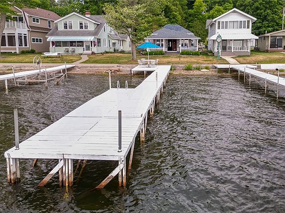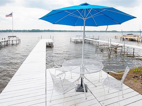 Amazing panoramic lake views, stunning sunsets and a great location on the lake are just some of the great features of this charming 4/2 lakefront home. Others include an updated and fully-applianced kitchen with quartz countertops, spacious knotty pine dining room and huge living room with brick fireplace and vaulted ceiling. Awesome lakeside front and back porches. Central air. Deck off dining room and front porch. Nice dock with table area. Deep lot with parking area for 5 cars. Most furnishings included. Great home for entertaining and enjoying life at the lake!