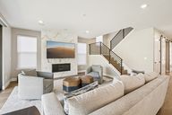 - Description: Hardwood Floor, Gas Fireplace, Neutral Tones, Recessed Lighting, Access To Rear Covered Patio, Large Windows W/Shades, Open To Kitchen & Dining