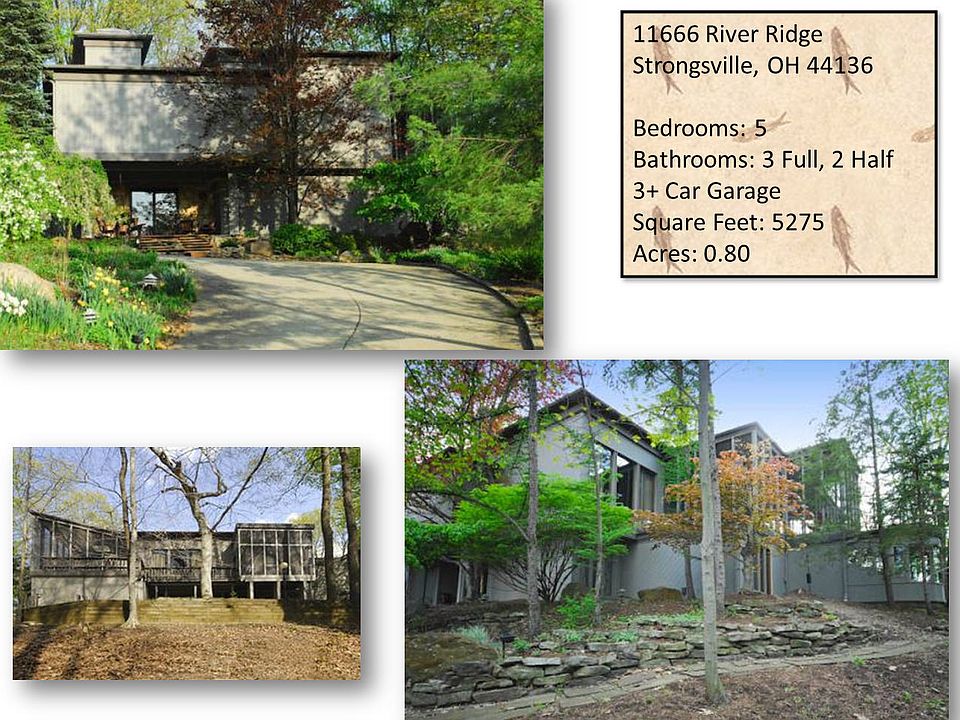 A touch of "Falling Water". Inspired by Frank Lloyd Wright, Bob Schmitt created this one-of-a-kind home of distinction. This home is considered the Crown Jewel of Strongsville's Ledgewood Development. Sitting atop of a Private Cul-de-sac overlooking breathtaking views of the Metroparks & the Rocky River, this awe-inspiring piece of architecture is truly a Showstopper. Featuring a unique one-of-a-kind floor plan. Walk in to immense foyer with a soaring stair case, ceilings & skylights. There are 5 bedrooms on the 1st level including a guest suite and master suite complete with a glamour bath with soaking tub, sauna, & breathtaking views. Also on the 1st level is a large laundry room for convenience and a 3 car side load garage. The 2nd floor boasts an eat-in kitchen with island, granite countertops, upgraded appliances, custom cabinets & a screened in outdoor breakfast nook with views to die for. An office with custom built ins to work from home and a large studio with skylights make life easy for an executive, artist or fitness fanatic. Entertain in dramatic fashion with a Great Room and Living Room that are separated by a stately 2-sided custom stone fireplace. Both are accented with custom cabinetry & highlighted with a large bar. Entertain or Relax in nature with a massive floor to ceiling screened in lanai with dramatic views. Enjoy Tennis, Basketball, and Swim in an Olympic-sized Pool in the Ledgewood Development. Come and see rare piece of architectural history.