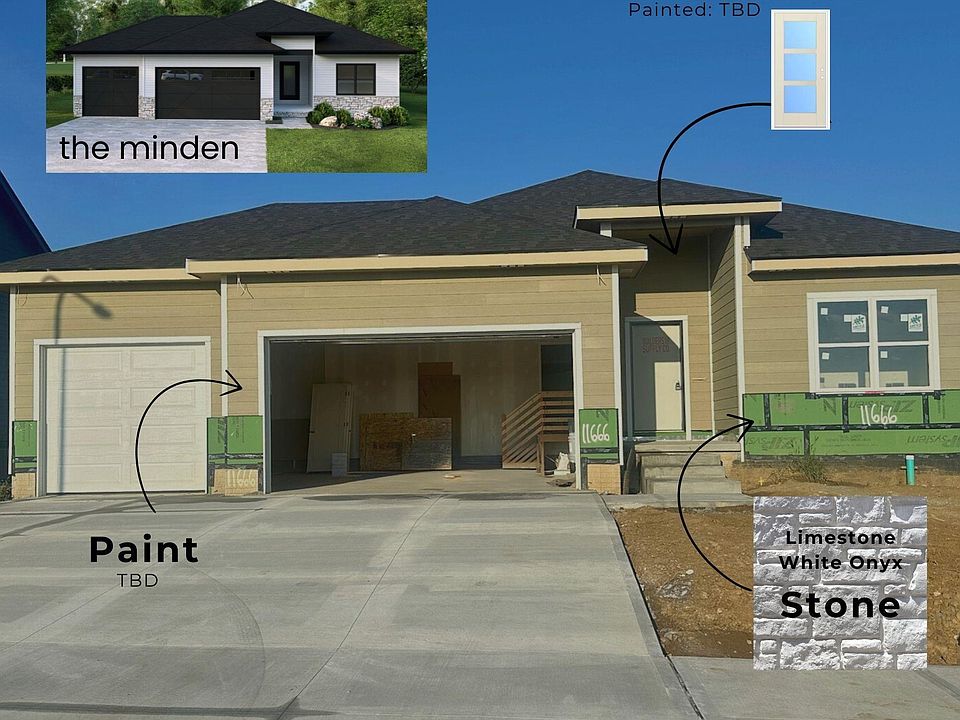 The Minden I by THI Builders—completion date 10/28 and now in finishing touches, available to show/for sale!. This plan offers 5 bedrooms on a walkout lot with covered composite (low maintenance) deck, fully finished basement in the sought after Ashbury Hills neighborhood complete with pool and pickleball courts! The kitchen is loaded with upgrades: quartz counters, a vented hood, gas stove upgrade, full tile backsplash, SS appliances, & soft-close drawers that flow to the open concept living area w/ full stone to ceiling electric fireplace w/ mantle. Black window package upgrade. Enjoy outdoor living on the covered deck or retreat to the primary suite with dbl sinks, tiled shower & walk-in closet. The finished LL adds two additional bedrooms, full bath, and a huge rec space perfect for movie nights, gym, or playroom. Located in Papillion School district & minutes from Shadow Lake, Werner Park, Prairie Queen Lake, and Walnut Creek Rec Area.