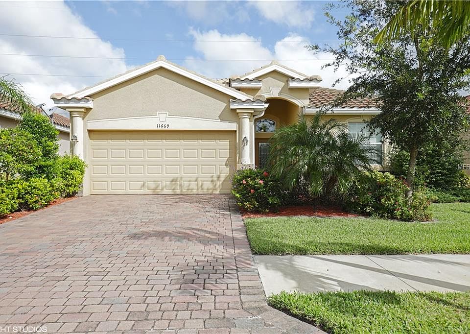 Lowest Priced Single Family Home in Olympia Pointe! GATED COMMUNITY ABOUT 5 MINUTES FROM I-75. Come check out this newer home (built in 2014) with 4 bedrooms and 3 full bathrooms. This home has so many wonderful qualities from the stunning entrance to the open great room style living space. The Master bedroom and the 3 additional bedrooms have new wood laminate flooring! The Kitchen is full of granite counter tops, wood cabinets, and stainless steel appliances. Do you love palm trees? If so this is the community for you. Olympia Pointe is lined with many types of palm trees on every street. The community also has a resort style pool as well as a clubhouse and exercise room. You will know you are home when you get past the 24 hour highly secured gate and are greeted with a grand round about and 3 tiered fountain. Oh, and Olympia Pointe takes care of the lawn for you! NO lawn mower needed! Come check it out! This may be the one for you!