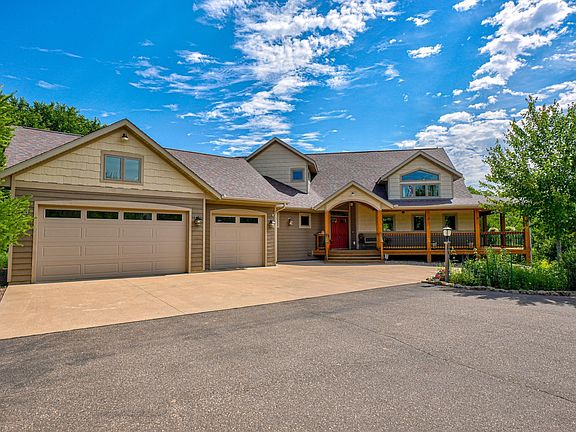 Tucked away on a private and peaceful 3-acre lot, this custom home offers 4 beds, 5 baths, and a life of space, comfort, and privacy! Step inside to a sunlit open layout with soaring ceilings, hickory wood floors, Marvin Integrity windows with custom blinds, and fresh paint throughout. The cozy wood-burning fireplace anchors the spacious living area, which flows seamlessly into the stunning eat-in kitchen featuring granite counters, a large center island, maple cabinetry with under-cabinet lighting, and a stylish wine cabinet. Direct access to the screened porch and wraparound deck makes indoor/outdoor living effortless. Enjoy main-level living with an impressive owner’s suite featuring a jetted tub, walk-in shower, private balcony, and a spacious walk-in closet with built-ins. A second main-level bedroom includes an ensuite bath, while the upstairs loft offers a versatile space with its own bathroom and generous space for lounging, hobbies, or guests. Retreat to the brand-new finished walkout basement offering a large living area, wet bar, two additional bedrooms, a luxurious full bath, and tons of storage—perfect for everyday living and entertaining. Surrounded by mature trees, cherry bushes, and maintained gardens, the beautifully landscaped lot is a private escape to enjoy the outdoors. An oversized circle drive, 3-car attached garage, and a 2-car heated and cooled detached garage/workshop with an additional living area above—including a kitchenette, bathroom, and wood-burning stove—add to the home’s exceptional amenities. Located just moments from Willow River State Park and a short drive to Hudson & Stillwater, this home provides a rare opportunity to live tucked away in nature without sacrificing convenience. Don’t miss out on this amazing opportunity!