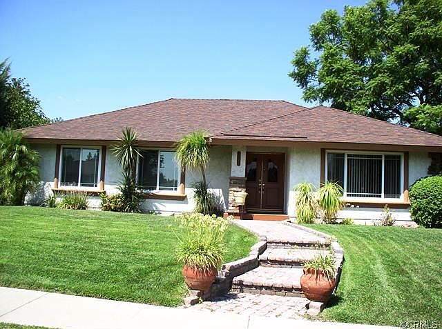 This one has it all on your WISH LIST. The home sits on a large corner lot with RV parking, on a cul-de-sac and a single story!! Standard sale and located in Upland. Exterior has been updated with stone accents and newer vinyl mullioned windows. The amazing Great room, approximately 29'by 24feet , showcases a large stone floor to ceiling fireplace. The vaulted ceiling with recessed lighting, fans and wired for surround sound shows off the greatness in this room. Leading out to the back yard, the patio has a vaulted solid covered roof that matches the existing roof shingles which extends the living space for all your back yard entertaining. The custom BBQ Island is every man's dream. Grand Classic Grille with two side burners and a builtin oven. Mini refrigerator and sink makes everything handy for those family get togethers. A second fireplace is located right off the kitchen and combo family room. Large bedrooms, with fans and mirror wardrobe closet doors. Fresh interior paint shows off all the crown molding. The two car garage includes tons of storage space with builtin cabinets and a work bench. There is also an additional storage shed in the backyard. Side yard has double RV parking as well as pull through.