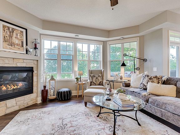 A complete showstopper! Overlooking the 2nd fairway on the Chaska Town Course, this completely updated luxury townhome offers 2,500+ sq ft on one level and absolutely breathtaking views. Some of the incredible updates include stunning new flooring, beautifully enameled cabinetry throughout, all new lighting, both bathrooms updated, new washer, dryer and range, new roof, driveway, garage floor...the list goes on! Gorgeous primary suite, one of the only units with TWO spectacular gas fireplaces, amazing kitchen, spacious great room with views from every angle, a HUGE bonus room rarely found in these units, large windows allowing so much light, fabulous deck, two additional bedrooms and full bath, and SO much more. A meticulously maintained, exquisitely updated home with jaw dropping views that cannot be matched.