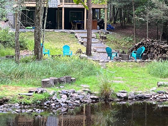 PROPERTY CURRENTLY UNDER CONTRACT AND WILL ENTERATIN ALL BACK UP OFFERS. Catch the BIG one in the stream in the backyard or relax in the porch overlooking the babbling brook. Bring the s'mores for the campfire facing the stream or cheers in front of the living room fireplace with your honey. This updated 4-bedroom, 2-bath, plus family room and stainless steel appliances in kitchen and open floor plan makes this home perfect for your family gatherings. Enjoy these community amenities: 3 heated pools, tennis courts, a lodge by a large lake with year-round activities, volleyball, boating, fishing. Playgrounds, snowmobile and utility vehicles are permitted. Short-term rentals welcome. Serenity abounds—don't miss this chance to unwind before someone else does!