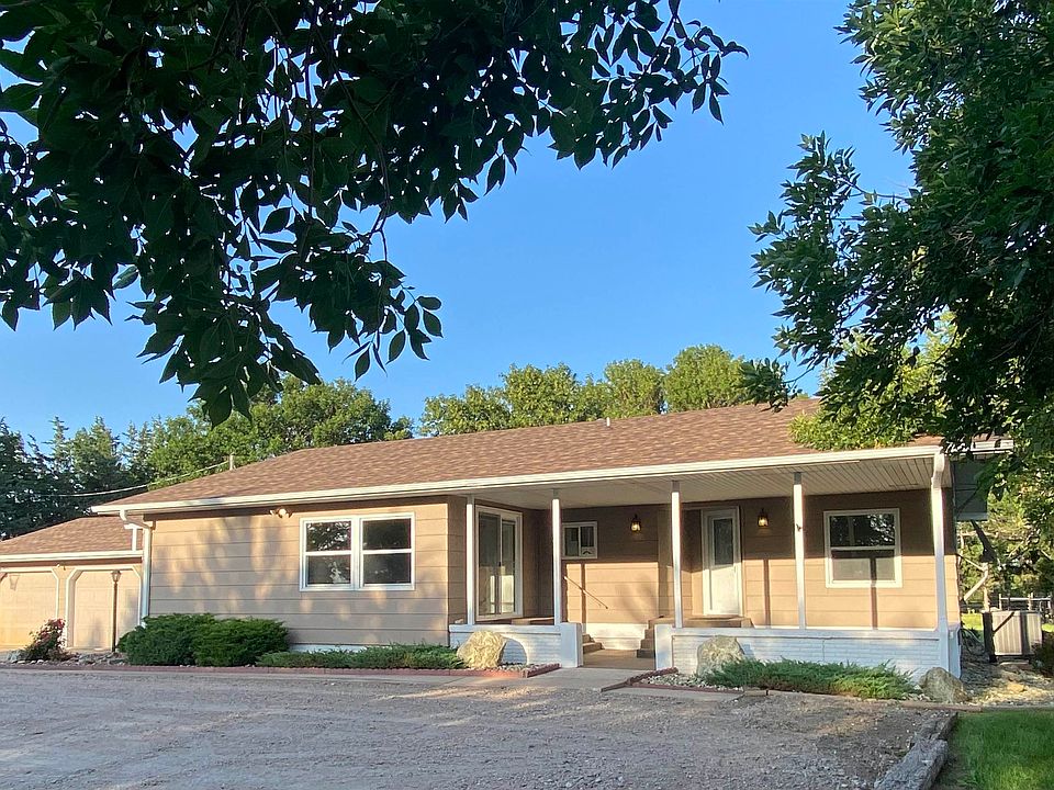 2 + 2 Bedroom, 2 Bath home on 1.76 acres. This acreage is located on the west edge of Minden and has been extensively remodeled. All new wood laminate flooring throughout the main floor, new dishwasher, new paint inside and out, and both bathrooms have new fixtures, vanities and cabinets. Spacious rooms, with lots of windows and natural light, and main floor laundry. The master bedroom has an on suite bathroom and a great walk-in closet. The basement is mostly finished with 2 nonconforming bedrooms and a large family room. The mechanical room has a stairway leading up to the 2 car attached garage. The roof is less than 5 years old and there is a New Heat Pump. There is a wood deck at the back of the house and a covered front porch/patio on the front side. Lots of trees which provide privacy plus an open view to the south. Approximately 20 miles from Kearney and less than a mile from downtown Minden.