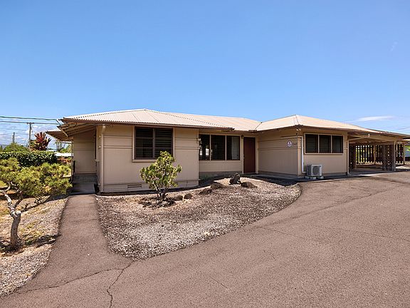Truly a gem, this vintage home situated on a large 17,374 sqft. lot is conveniently located within walking distance to shopping, restaurants, the university of Hilo and more. Home has been lovingly maintained by same family over the years with only one sale since built. There are three spacious bedrooms total with two situated on one side of the house and third on other side. Primary bedroom has a split air conditioner to keep you nice and cool. There is new laminate wood flooring including all three bedrooms and the family room. The two full bathrooms are located on either side of the house. One has a traditional Furo bath (Japanese style bathing tub) in addition to the shower. Seller is leaving a new Kohler toilet for new owners if they decide to replace the smaller toilet in the primary bathroom. The larger than average kitchen has plenty of cabinet and counter space. Besides the family room there is an additional room near the kitchen that perhaps could be used as a formal dining room. Two car attached carport will provide protection for your vehicles from sun and rain. The laundry room is located in carport with an additional storage room too. <br>There is a permitted underground fallout shelter just outside the back of the carport. Perhaps one could use this for a wine cellar or workout space as it stays fairly cool. Roomy storage shed in back yard for all your yard tools. A large perimeter foundation in backyard was once a greenhouse. One could refurbish this foundation and have a nice greenhouse again.<br>Home was tent fumigated in August of 2023 and has a transferable warranty to new owners through August 2028. <br>Don’t miss out on this one with its great location and larger than average lot.