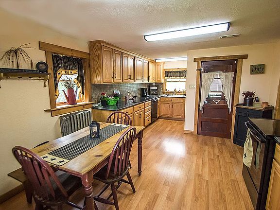 This charming rustic home offers a peaceful retreat in a quiet location, featuring beautiful wood details throughout. The spacious master bedroom is complemented by a luxurious bathroom with a Jacuzzi tub and heated shower floors for added comfort. Enjoy cozy evenings by the fireplace, which can burn either wood or propane, while the high-efficiency propane boiler heating system keeps the entire house warm. The kitchen is equipped with all appliances and boasts soft-close cupboards and drawers for convenience. Upstairs, you'll find a versatile loft space, a laundry room, office area, and a full bath. Skylights illuminate every room on the second floor, including the bathroom, creating a bright and inviting atmosphere. City water service ensures reliability and ease of living, making this home a perfect blend of rustic charm and modern amenities.