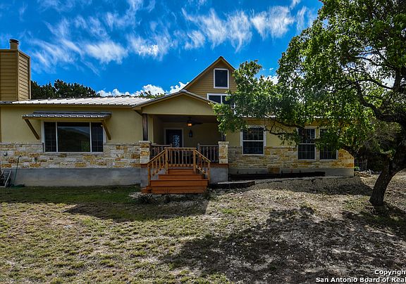 Custom Hill Country stone and stucco home w/ stunning Hill Country Views on 5 private wooded acres with beautiful pool/ jacuzzi combo and multiple decks for entertaining guest. Chefs kitchen w/ granite, custom cabinets, and stainless appliances. Wood, tile, and Bamboo flooring throughout for ease of living. Master suite offers walk-in closet, oversized bath, and office/nursery room. Ample parking for RV & Boat, 5 min. to Medina Lake. Low taxes, Low electric, 3.7KW wind generator and 20 min. to San Antonio!