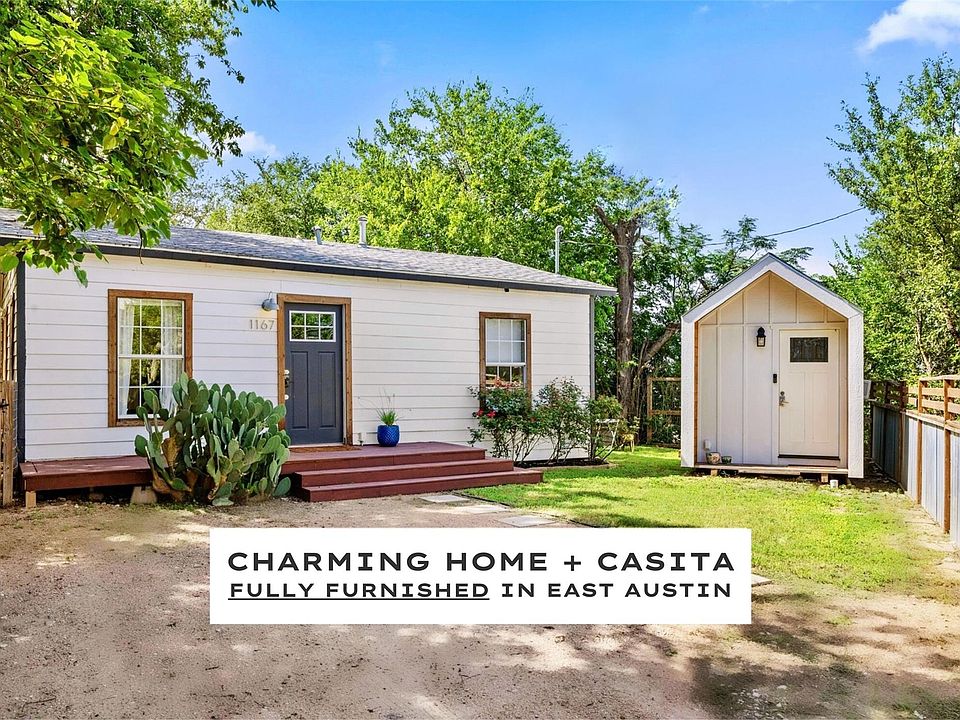 Fully furnished Airbnb/Investment! Charming and full of character, this remodeled 1950’s home tucked in the heart of East Austin offers a 2 bedroom/2 full bathroom main bungalow plus a tiny home, making it the sweetest little compound with tons of opportunity. The main home includes a bright and open main living that opens to the dining and fully equipped kitchen. Step onto the private backyard deck and enjoy peaceful treehouse vibes as you overlook the treetops. A newly added and fully furnished tiny home sits on the property (200 sqft), complete with its own kitchen and bathroom—ideal as a guest house, private office, or additional rental unit. Both the main home and the tiny home are being sold furnished and move-in ready, making this a true turnkey investment with a proven 2-year Airbnb history and available income records. Located within minutes to many Eastside local faves and award winning restaurants like Birdie’s and Nixta Taqueria, just 5 minutes to Downtown and Town Lake Trail, and 10 minutes to the Airport. Recent updates include the reinforced front deck for added safety and curb appeal, the foundation has been professionally repaired with a structural report in hand, and fresh landscaping completed. With unique style, prime location, and established short-term rental income potential, this one-of-a-kind East Austin property is a gem not to be missed.