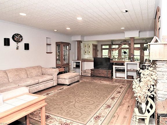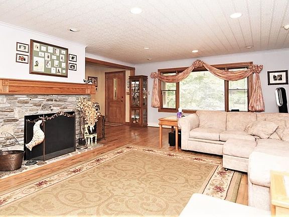 Nature lovers delight! Sharon Twp. 3.8 acres with stream & several water falls. This uniquely laid out property sits back from the road in a secluded setting with breath taking views from every window. Addition added in 1997 includes expanded living rm & dining rm plus family/game media rm, master bedrm with vaulted ceiling & skylight, 2 story master bath & huge vaulted sitting rm which opens to a covered second floor porch. Garage has heat, hot & cold water & 30AMP for an RV plus oversized with extra storage. 2 refrigerators, 2 washers, 2 dryers, 2 sump pumps & 1 grinder pump. 40 X 26 rm marked other is a screened porch with f/place & new roof 2019, access door is from the kitchen. This area was used by the seller for her business (dog groomer and national dog breeder). All dogs are now off the property except for 1 personal dog. The room marked family rm was used as the training room for the show dogs. Looking to run a business from your home? This property is for you. Large partially finished basement with 2 direct entry doors was used as the dog grooming shop, could be office space, in home day care center or possibly convert to parent suite. There is room to park an RV next to the garage and behind that is a designer chicken coop. No gas on the property but gas is at the street. Laundry area in mstr bedroom suite & also in lower level. 2 electric boxes total 440AMP, all updated. Water softener, automatic chlorinator & reverse osmosis.