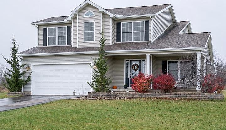 Great 2 story home that is ready for you to move in before the new year! This home has a generous front porch that is perfect for watching the panoramic vistas. Inside, the first floor has handscraped wide plank wood flooring, 5 baseboards, living room with gas fireplace, powder room that is tucked away, dining area, the kitchen has quart counters w plenty of food preparation space, breakfast bar and large pantry w frosted door, ss appliances. Outside there is a big composite deck, pool and a 24 x 40 pole barn. Upstairs the second full bath was just redone w tile flooring and trough style vanity. The bedrooms are large and offer a lot of storage. The master suite has a WIC w stellar closet organizer, separate jetted tub/shower and solid surface counters. The laundry area is on the 2nd floor and has a new washer/dryer. The full basement is finished w daylight window, a great dry bar and family room. This house has natural gas.