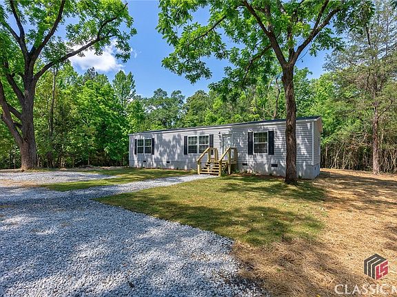 Serene homeplace setting in the country. Brand new construction of a 2024 manufactured home with custom deck in back & nice porch entryway on a circular drive. This home is just a short drive off Hwy 72 & is less than 10 minutes to Elberton or Comer & less than 30 minutes to Athens GA. Come home to the country and sit in the shade of Walnut Trees & Pecan & Magnolias. This hard to find setting is surrounded by acres of land & just a short drive to Lake Russell. Large open living area with open kitchen island featuring stainless apron sink plus Whirlpool appliances. Large laundry/mud room & split bedroom plan with owners suite on one side of the home & two bedrooms on the other for maximum privacy. New well, new septic system & move in ready with a transferable warranty for new buyer. Construction was upgraded with plywood underlayment. Underground utilities to boot! If you are looking for affordable & beautiful this is it! Home qualifies for 100% financing if buyer qualifies. Ask for more info on options available.