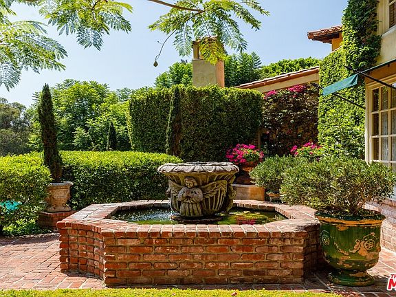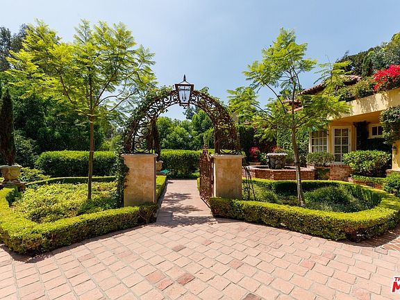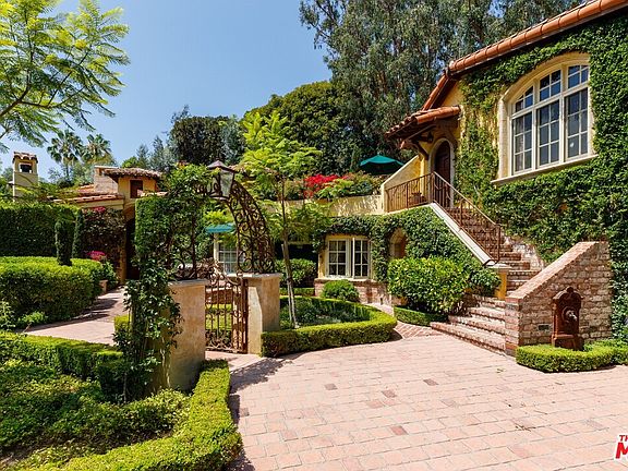 This private enclave is nestled on over one acre of verdant grounds within the city limits of Beverly Hills. As the gate closes behind you, enter a secluded resort hideaway and leave the world behind. A true sanctuary offering privacy and seclusion that is so rare today. The magnificent residence has been lovingly maintained by the current owner. Beamed vaulted ceilings and a flowing layout offer endless possibilities. Nearly every room opens out to lush gardens, terraces and rolling lawns. Multiple grand entertaining spaces including formal living room, dining room and library. 7 bedrooms total including 3 bedrooms downstairs and maids room off the kitchen. A separate guest suite above the garage has its own entrance. Upstairs, the splendid master suite features his and her baths and a private terrace. Completing the spectacular grounds are a lovely pool and lighted N/S tennis court, all totally private and secure in a superb location.